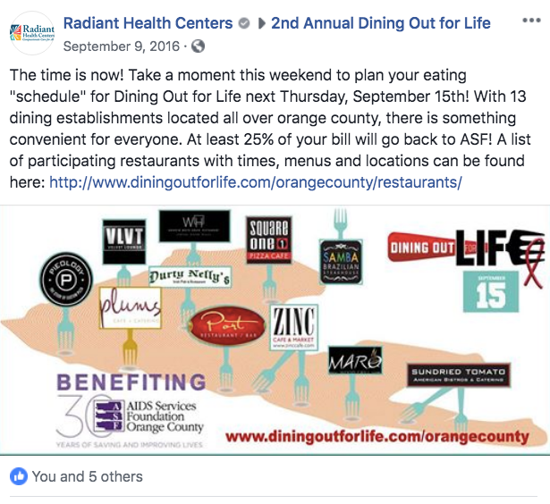 Posted in Events, Facebook, fundraising, Instagram, Social Media Social Media Posts Posted on April 24, 2019April 25, 2019 by thebustache Various Facebook & Instagram posts for OneOC, AIDS Services Foundation & Radiant Health Centers from 2011 – 2018. Share this: Click to share on X (Opens in new window) X Click to share on Facebook (Opens in new window) Facebook Like Loading... Related Author: thebustache 1979 VW Bus ... Let the adventures begin... View All Posts